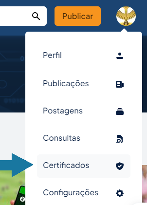 Basta fazer o login, clicar sobre o ícone no canto superior direito da página e depois em Certificados: