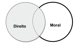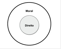 Assim sendo, o Direito não é algo diverso da Moral, mas é uma parte desta, armada de garantias específicas. A teoria do mínimo ético pode ser reproduzida através da imagem de dois círculos concêntricos, sendo o círculo maior o da Moral, e o círculo menor o do Direito. Haveria, portanto, um campo de ação comum a ambos, sendo o Direito envolvido pela Moral. Poderíamos dizer, de acordo com essa imagem, que tudo o que é jurídico é moral, mas nem tudo o que é moral e jurídico. (REALE, 2002, p. 42)