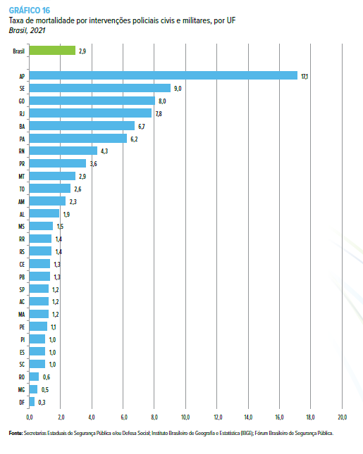 Segundo o Anuário Brasileiro de Segurança Pública (ed. 2022), o Brasil já contabiliza 43.171 mortes por atuação policial, cujos dados estatísticos reforçam a complexidade do tema.