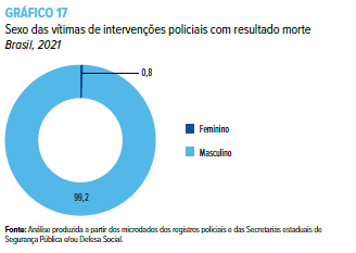 Outro aspecto de relevante observação pelo Anuário Brasileiro de Segurança Pública foi o perfil das vítimas de violência policial, que na sua maioria são homens e negros.
