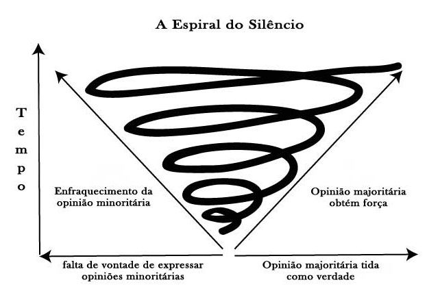 Figura 3 - Na Teoria da Espiral do Silêncio, indivíduos com pensamento minoritário, temendo isolamento, tendem a não expor sua opinião quando há uma contrária dominando.