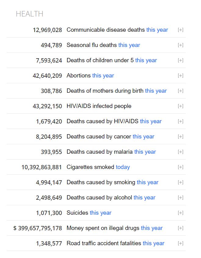 Derosa (2018, apud LINS, p.59) estima que 80.756 abortos foram provocados no Brasil, em 2015. Mantovani (2015, apud LINS, p. 59) estima em 103.134. No mundo, 42 milhões de possíveis vidas humanas foram perdidas através do aborto, somente em 2021, superando a soma das principais causas de morte humana (38 milhões).