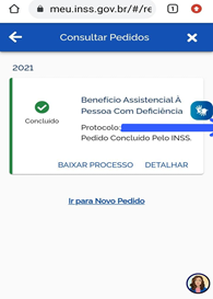 Imagem 1 – Requerimento do BPC pelo aplicativo “Meu INSS”