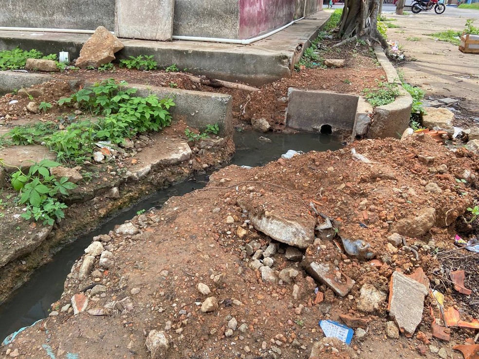 Esgoto a céu aberto no bairro Congós, em Macapá — Foto: Laura Machado/g1