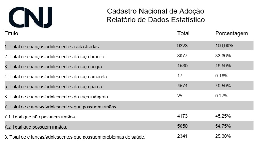 Entretanto a disponibilidade de crianças para a adoção é de diversas características e idade, muitas crianças que estão para a adoção acabam sendo abandonadas pela segunda vez. Isso porque não preenche os requisitos dos adotantes, primeiro são abandonadas pela família natural e depois suportam a falta de adotantes.