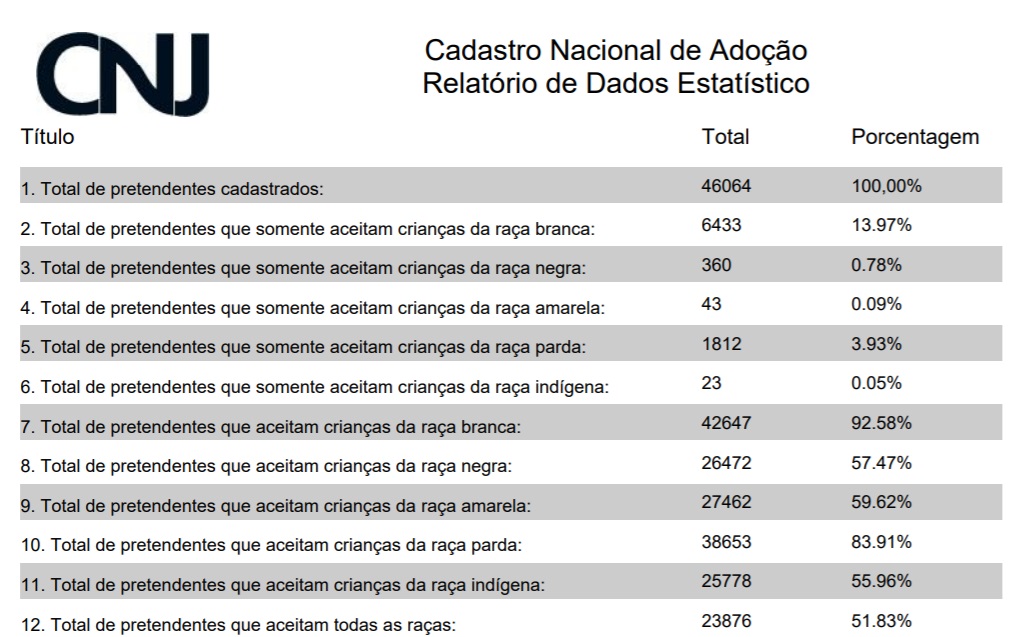 Os brasileiros no ato da adoção têm as suas preferências, buscando sempre uma criança que tenha até 2 anos de idade, com uma aparência que tenha semelhança com as dos pretendentes, e caso não seja possível, que pelo menos a criança tenha a pele branca e com o maior número de características caucasianas.