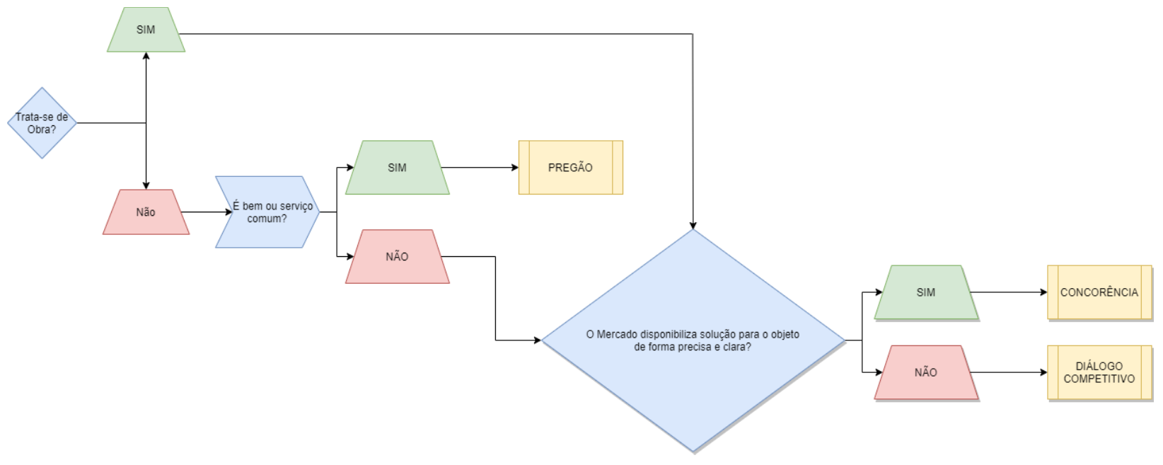 Como pode se ver pelo fluxograma, a modalidade nova, de diálogo competitivo só será utilizada em último caso quando não há possibilidade de ser resolvida - a situação - por outras modalidades de licitação, como o pregão, ou a concorrência. Portanto, “(...) em que pese tais considerações, não se vislumbra uma efetiva alteração no procedimento licitatório, principalmente no que tange uma maior agilidade e menor burocratização” (SANTOS, SILVA, 2021, p. 7) de todo o processo envolvido.