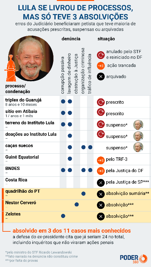 Poder 360, Lula diz que foi absolvido, mas segue com problemas na Justiça, 2022. Disponível em: https://www.poder360.com.br/justica/lula. Acessado em: 01/06/2023.