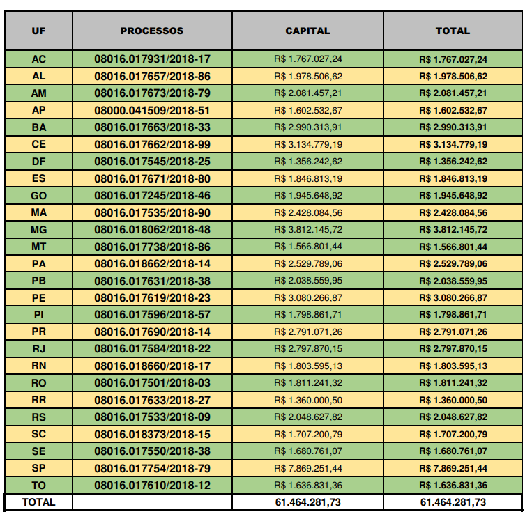Só no ano de 2018 foram repassados mais 61 milhões do fundo para os estados custear os presos. (ver tabela 01).