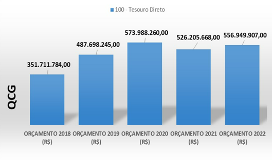 Gráfico 2 - Orçamento do QCG na fonte 100 no último quinquênio 169
