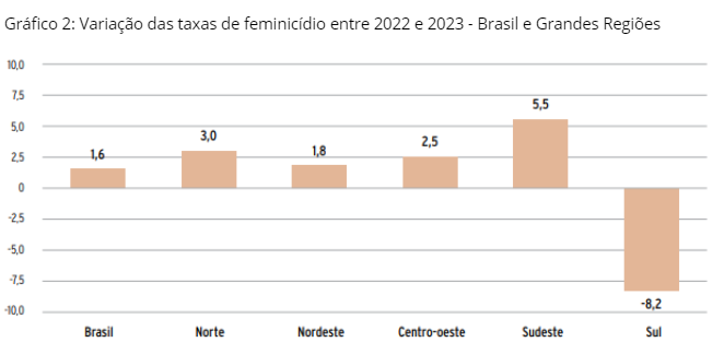 FIGURA 2 – Variação das taxas de feminicídio entre 2022 e 2023 - Brasil e Grandes Regiões 19