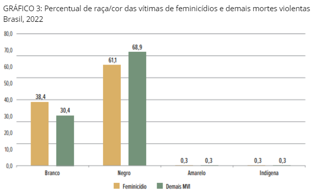 FIGURA 3 – Percentual de raça/cor das vítimas de feminicídios e demais mortes violentas Brasil, 2022 20