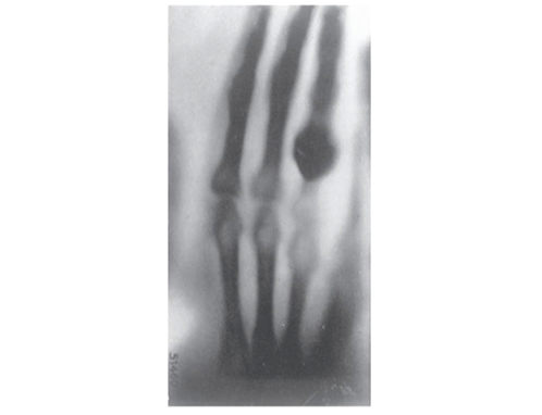 Imagem 2 - Impressão fotográfica da radiografia da mão do professor von Kolliker, apresentada por Röntgen em 23 de janeiro de 1896 (Brogdon, 2011, p.12).