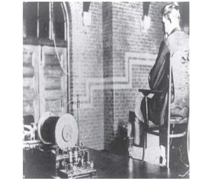 Imagem 1 - A perna de Tolson Cunning foi submetida a um exame de raios X para localizar o projétil disparado por George Holder na véspera de Natal de 1895. O exame foi realizado no Laboratório de Física da Universidade McGill, em Montreal, em 7 de fevereiro de 1896. O resultado foi a primeira placa de raio-X a ser admitida em um tribunal na América do Norte (Brogdon, 2011, p.13).