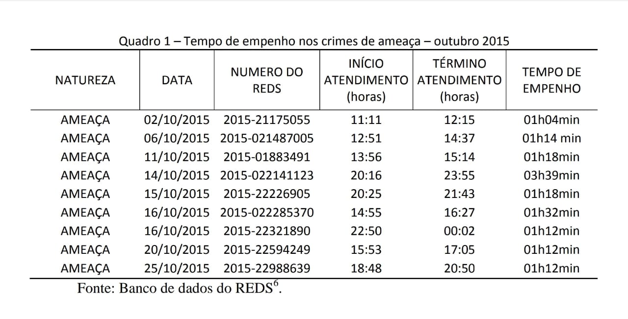 SOUZA, Ariane Lorena Oliveira de; CRUZ, Diogo Thomas Teles; SILVA, Erica Gomes. O TERMO CIRCUNSTANCIADO DE OCORRÊNCIA E AS SUAS CONSEQUÊNCIAS NA GESTÃO OPERACIONAL DA POLÍCIA MILITAR DE MINAS GERAIS. 2018, 17 fls. Escola de Formação de Oficiais da Polícia Militar de Minas Gerais - Academia da Polícia Militar de Minas Gerais. Disponível em: <20eudo.jsf?parametro=84>. Acesso em 6 de outubro de 2020.