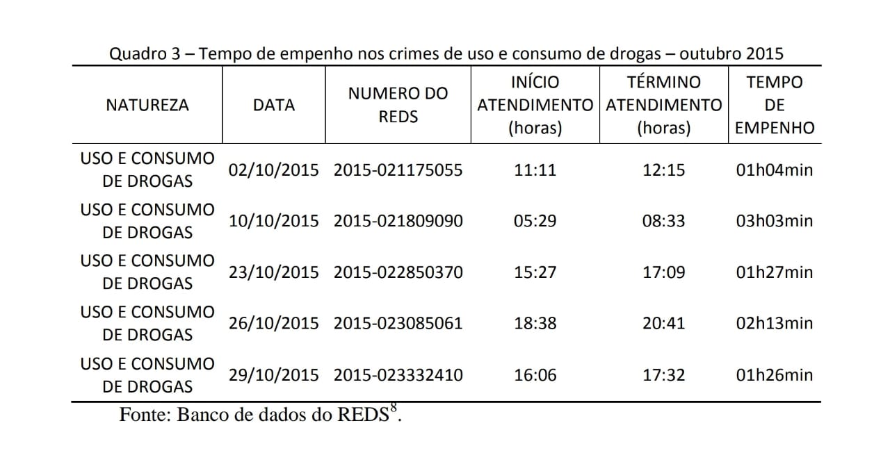 Em consequência disso, houve diminuição significativa no tempo de empenho das equipes policiais no que tange ao crime de uso e consumo de drogas.