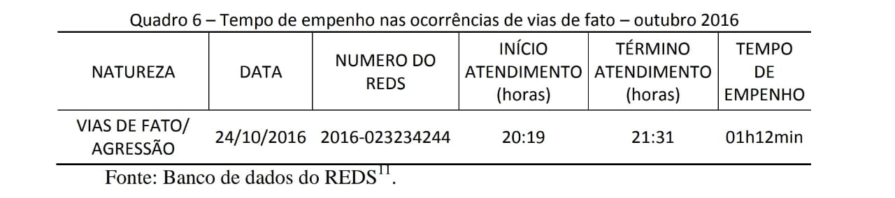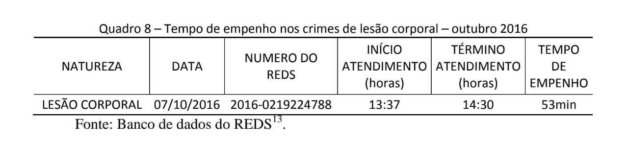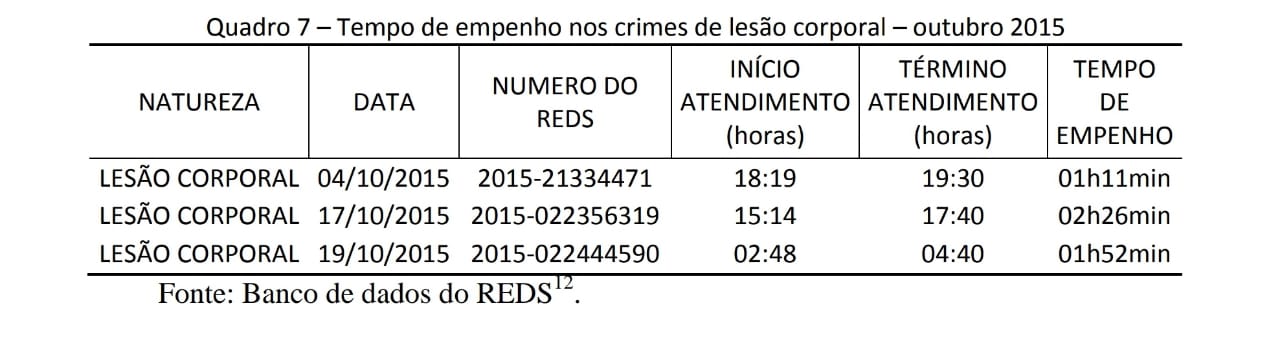 Nota-se que a redução do tempo de empenho da viatura da PMMG, pode garantir uma maior efetividade na resposta estatal, uma vez que houve uma redução média de 46% do tempo gasto no empenho nas ocorrências policiais, em que foi necessário a lavratura do TCO.