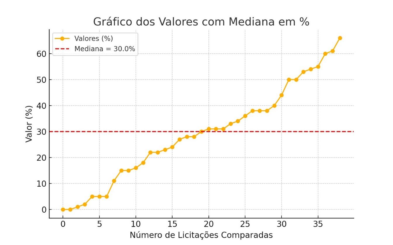 Ao realizar uma pesquisa empírica no Portal Nacional de Contratações Públicas - PNCP (BRASIL, 2021), utilizando como parâmetros licitações finalizadas em 2024 nos estados da região sul do país (SC, PR e RS) e que tinham como objeto a manutenção de iluminação pública, foi analisada uma amostra de 40 processos licitatórios (APÊNDICE A). Nessa análise, foram observados os percentuais de deságio alcançados em cada certame, identificando-se uma variação que oscilou entre 0% e 66% de desconto. A mediana dos percentuais de deságio registrados foi de 30%, evidenciando uma considerável queda nos valores aplicados pelos licitantes ao longo dos processos investigados.