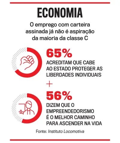 A economia pouco produtiva gera salários baixos, o nível de formalização do trabalho é cada vez menor, e a classe C (retratando o brasileiro médio) parece estar se direcionando para novas alternativas profissionais. O Instituto Locomotiva divulgou um estudo em parceria com a Veja, que retrata um pouco esse cenário: