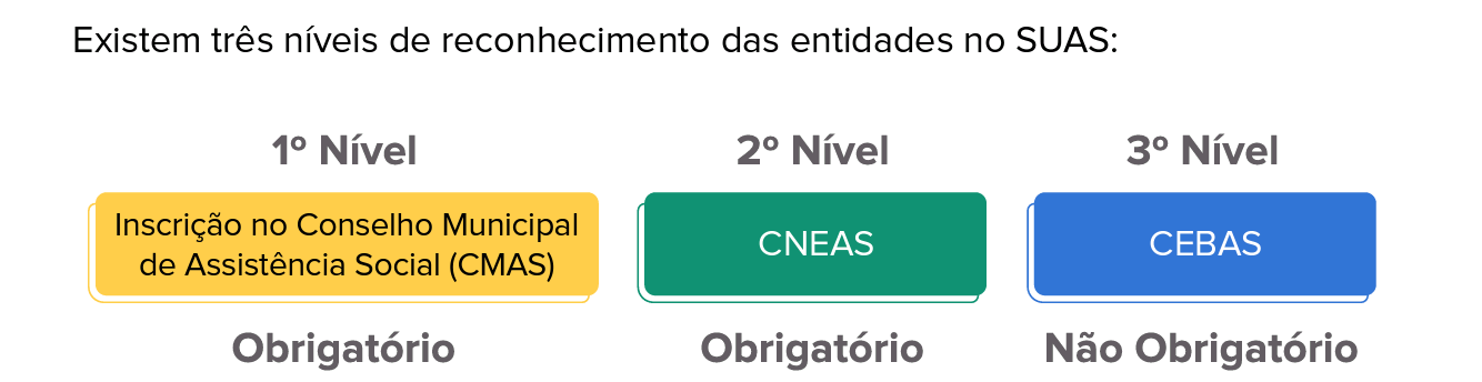 1º nível: inscrição no Conselho Municipal de Assistência Social - CMAS/COMAS;