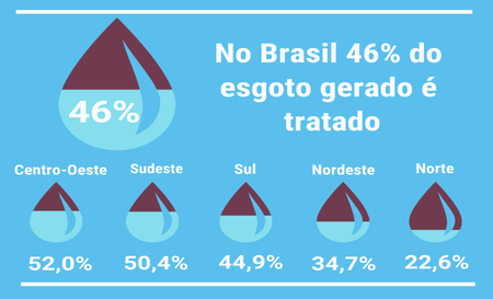Com relação aos índices, a macrorregião que melhor se sobressaiu foi a Centro-Oeste, que conta com o tratamento de 52,0% do esgoto gerado. O menor índice foi identificado na macrorregião Norte, em que apenas 22,6% dos esgotos gerados são tratados.