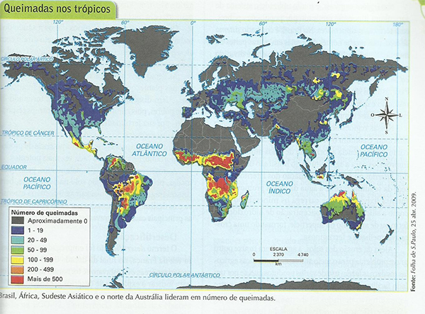 Imagem 04: Queimadas nos trópicos: Brasil, África, Sudeste Asiático e o norte da Austrália lideram em número de queimadas.