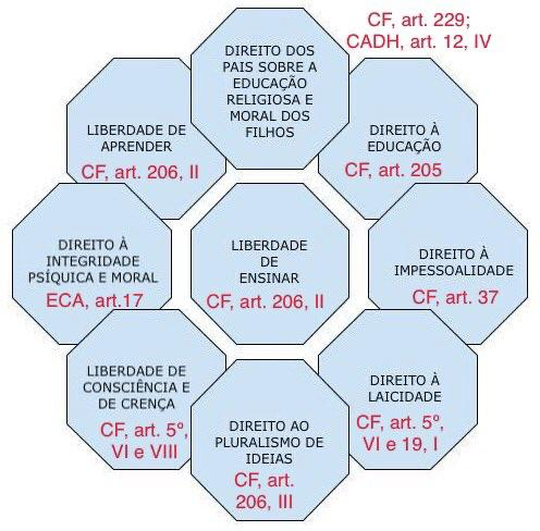 Resumo: Este artigo propõe uma reflexão jurídica e ética sobre os limites da liberdade de ensinar do professor no âmbito da educação básica, considerando o direito dos alunos à educação (CF, art. 205), à neutralidade (plano do dever ser – dever ético), à impessoalidade (CF, art. 37), à laicidade (CF, art. 5º, VI e art. 19, I), ao pluralismo de ideias (CF, art. 206, III), à liberdade de consciência e de crença (CF, art. 5º, VI e VIII), à liberdade de aprender (CF, art. 206, II) e à inviolabilidade da integridade psíquica e moral (ECA, art. 17); e o direito dos pais sobre a educação religiosa e moral dos seus filhos (CF, art. 229; CADH, art. 12, IV), à garantia de padrão de qualidade (CF, art. 206, VII). 1 2 3 4 5 6 7 8 9 10 11