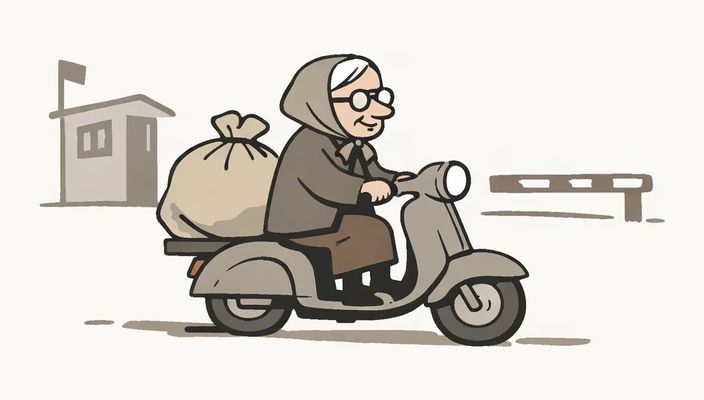 "Diz que era uma velhinha que sabia andar de lambreta. Todo dia ela passava pela fronteira montada na lambreta, com um bruta saco atrás da lambreta. O pessoal da alfândega – tudo malandro velho – começou a desconfiar da velhinha. Um dia, quando ela vinha na lambreta com o saco atrás, o fiscal da alfândega mandou ela parar. A velhinha parou e então o fiscal perguntou assim pra ela:
