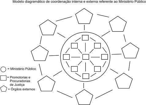 O Ministério Público, além de buscar, através de convênios, protocolos, ajustes, termos de cooperação operacional ou auxílio técnico etc., uma coordenação entre os diversos órgãos públicos para viabilizar e otimizar sua atividade-fim, assume por conta disso, paralelamente, uma espécie de responsabilidade pela saúde institucional e técnica de tais órgãos. Responsabilidade que o obriga a ser um dos principais combatentes do Estado (Município, Estado-membro e União), com o objetivo de forçá-lo constantemente a manter ditos órgãos (principalmente aqueles indispensáveis ao bom desempenho das funções ministeriais) dentro de padrões mínimos de eficiência (como, aliás, determinam os arts. 37. e 129, II, da CF).