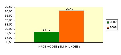 O gráfico seguinte demonstra o crescimento do número de ações de 2007 para 2008: