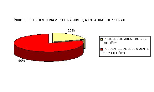 Trazendo esse diagnóstico para a justiça estadual de 1º grau, a mais sobrecarregada do país, talvez por ser a mais próxima do cidadão, a relação entre o número de juízes e o de processos revela uma carga de trabalho de 5,3 mil processos por magistrado. Conforme dados do Conselho Nacional de Justiça, “Justiça em números”, em 2008 tramitaram mais de 45 milhões de processos no 1º grau da justiça estadual, sendo que foram sentenciados apenas 9,3 milhões de processos (aproximadamente 20% do total). Por consequência, a taxa de congestionamento, que se refere ao número de processos pendentes de julgamento, ficou em 80%58.