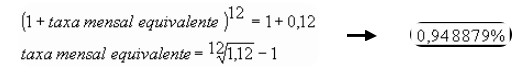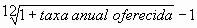 Primeiramente, temos que calcular a TAXA MENSAL QUE SE EQUIVALE A TAXA ANUAL OFERECIDA DE 12%:
