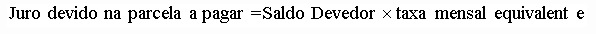 Ao estabelecer a primeira parcela através do Sistema Price, o valor resultante, representa todas as parcelas, porém, o juro embutido na parcela, corresponde ao juro simples mensal sobre o Saldo Devedor.