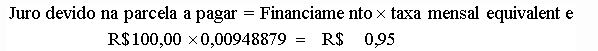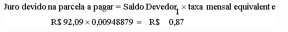 O juro devido na parcela a pagar equivale ao juro mensal sobre o saldo devedor: