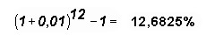 Por exemplo, a taxa de 0,948879% ao mês é equivalente à taxa de 12,00% ao ano, pois um capital colocado a 0,948879% ao mês produz o mesmo montante que produz quando colocado a 12,00% ao ano.
