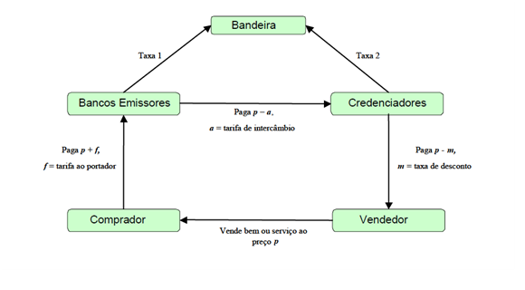 Abaixo, segue o esquema mais utilizado nas operações de emissão, credenciamento e liquidação das operações com cartão de crédito:
