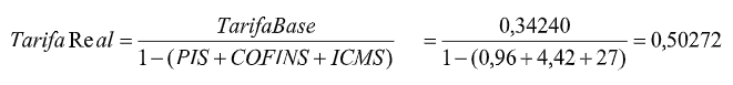 f) Inclusão no valor do kWh publicado pela Resolução ANEEL, os tributos PIS, COFINS e ICMS, conforme equação abaixo[1]: