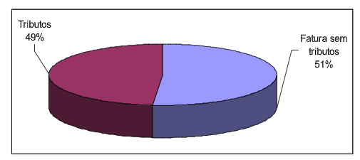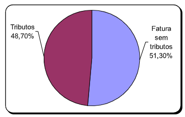 Os dados obtidos nos cálculos são sintetizados no Gráfico 1 a seguir, no qual se demonstra que 48,70% da conta de luz é composta de tributos. Ressalte-se que, dentro dos 51,30% da fatura sem tributos ainda estão embutidos os encargos setoriais. Pois, na verdade, embutido na tarifa base de R$ 0,34240 estão todos os encargos setoriais do setor elétrico, já mencionados. Conclui-se que a tributação sobre a tarifa de energia elétrica não é somente de 48,70%, mas bem superior a esse valor.