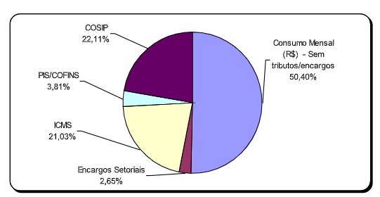 Conforme estudo da ANEEL, no ano de 2006, em média no Brasil, os tributos e encargos representavam 33,27% da tarifa de energia. Já em estudos publicados no Diário do Senado Federal, de 14 de setembro de 2005, mostra que nos Estados Unidos e na Grã-Bretanha a parcela de tributos e encargos incidentes sobre a tarifa de energia é de apenas 6,5%, e, no México, país comparável a nosso nível de desenvolvimento, a parcela dos tributos e encargos representam 13% da tarifa.