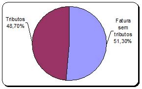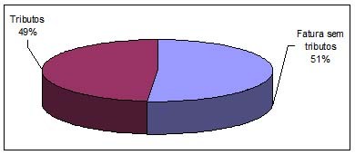Os dados obtidos nos cálculos são sintetizados no Gráfico 1 a seguir, no qual se demonstra que 48,70% da conta de luz é composta de tributos. Ressalte-se que, dentro dos 51,30% da fatura sem tributos ainda estão embutidos os encargos setoriais. Pois, na verdade, embutido na tarifa base de R$ 0,34240 estão todos os encargos setoriais do setor elétrico, já mencionados. Conclui-se que a tributação sobre a tarifa de energia elétrica não é somente de 48,70%, mas bem superior a esse valor.