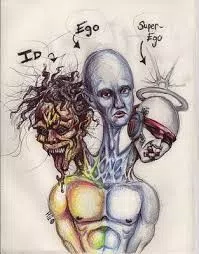 Para Freud o id como se vislumbra da imagem acima é a instância pulsional do nosso ser primitivo, amoral, desprovido de inconsciência e irracionalidade, sede, fome, prazer, e demais satisfações orgânicas imediatas, a qual os fins não justificam os meios, o id constitui uma herança biológica com projeção no psicológico que necessita constantemente descarga, irradiação de contato com o ego.