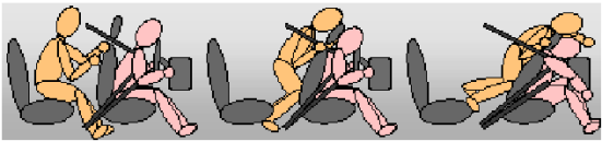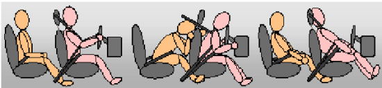 Estatísticas sobre acidentes mostram que passageiros que usam corretamente os cintos de segurança têm um risco menor de se ferirem e uma chance muito maior de sobreviverem num acidente. Por este motivo, a utilização dos cintos de segurança é exigida legalmente na maioria dos países. A dinâmica dos ocupantes, mediante impacto frontal contra barreira indeformável, bloco de concreto, a 50 km/h pode ser visualizada na Figura 2 abaixo.
