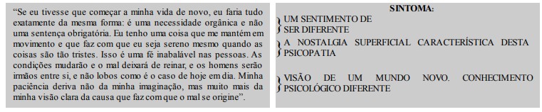 Abaixo, segue um exemplo de um padrão de pensamento de uma pessoa que demonstra um caso típico e grave de psicopatia astênica:
