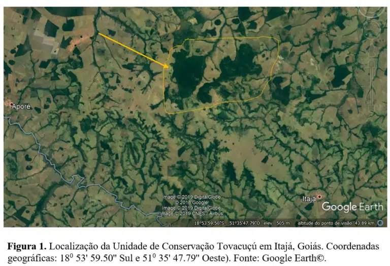 A área em estudo é a tão esperada Unidade de Conservação Parque Estadual Tovacuçu, objeto de estudo da presente pesquisa, também idealizada posteriormente como Refúgio de Vida Silvestre entre os Municípios de Itajá e Aporé, fruto de estudos financiados pela FUNAPE (Fundação de Apoio à Pesquisa da UFG) em contrato com a SEMARH (Secretaria de Meio Ambiente e Recursos Hídricos do Estado de Goiás), atual SEMAD, pelo Contrato nº 017/2012.