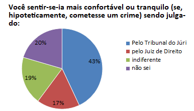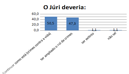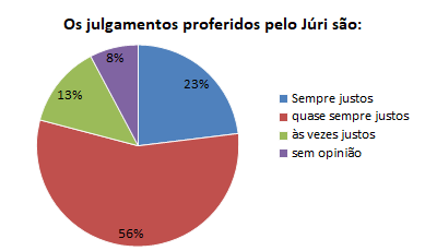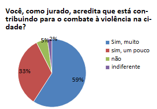 A confiança no sistema – que, sem dúvida, perpassa pela confiança neles mesmos – é evidente. Representam a sociedade, acreditam ser as sentenças justas e, assim, combatem a violência na cidade. Para significativa parte dos jurados, a competência poderia até ser ampliada:
