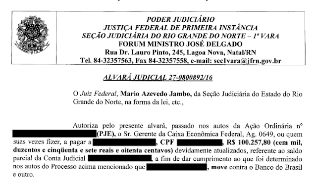 Alvará Judicial de cliente que recebeu R$ 100 Mil reais com a Ação de Cobrança do PASEP