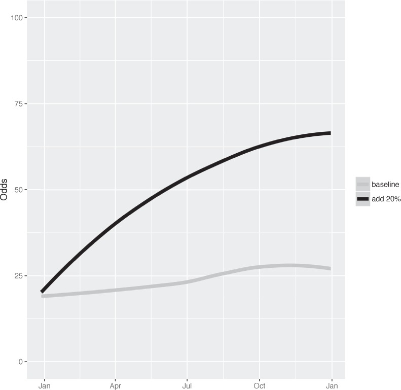 Outro ponto importante, é de que existe a possibilidade de policiais receberem incentivos para aumentar sua produtividade a partir da demanda. Isto, caso ocorresse, os influenciaria a procurar oportunidades adicionais para efetuar prisões. Logo, é compreensível pensar que quanto mais tempo a polícia patrulhar, mais crimes poderão ser encontrados neste mesmo lugar. O artigo analisado também expõe um gráfico que simula possíveis consequências deste cenário que vale a pena conferir.[27]
