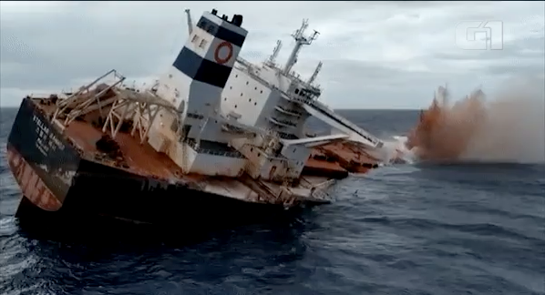 Momento em que o Stellar Banner afundou na costa do Maranhão — Foto: Redes Sociais – Fonte: G1