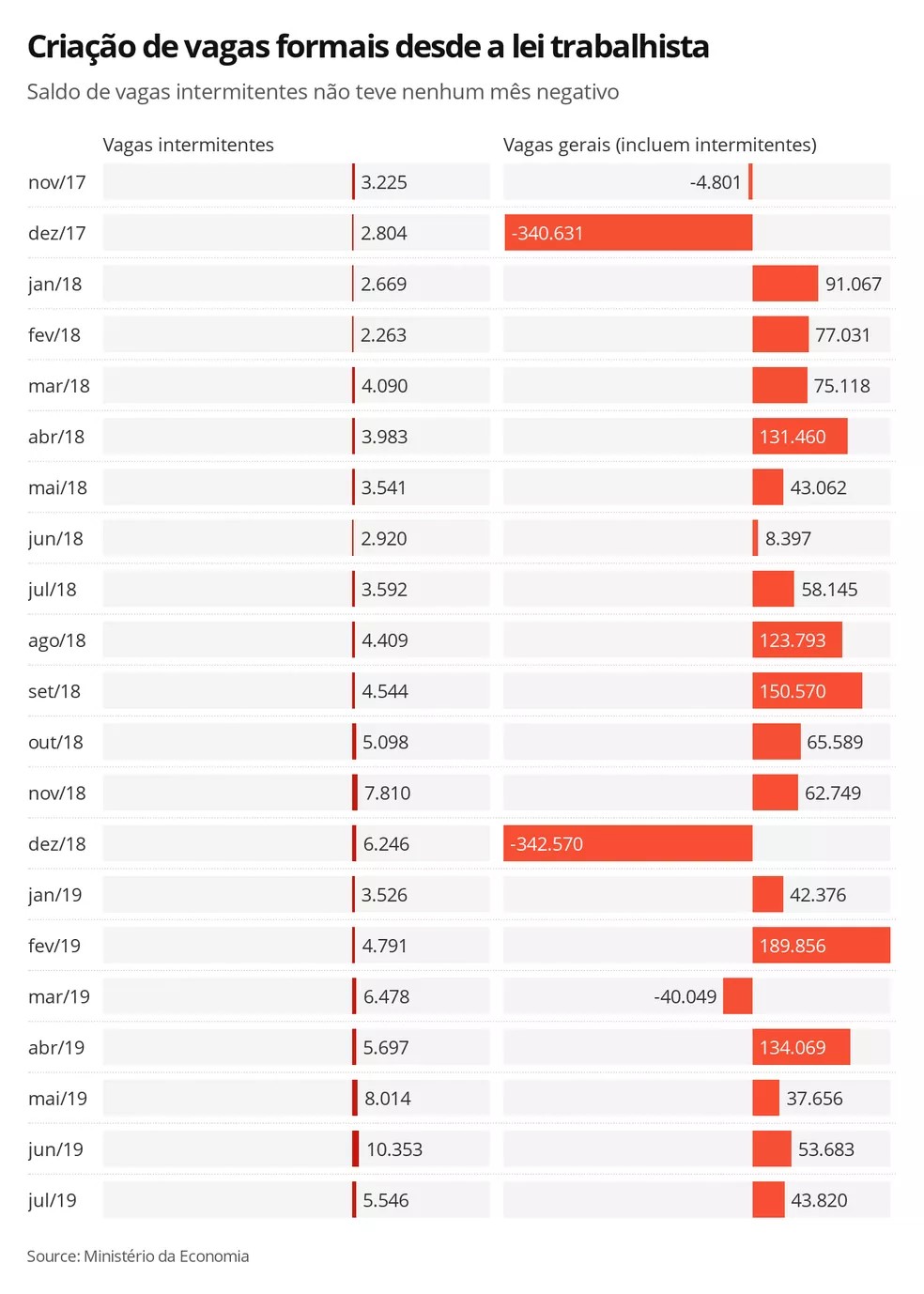 Figura 1 – Criação de vagas formais período 11/2017 a 07/2019