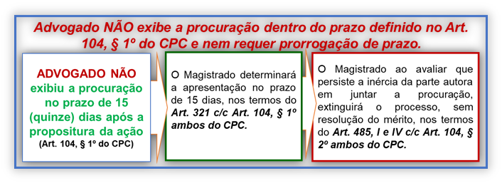 CPC, Art. 104. O advogado não será admitido a postular em juízo sem procuração, salvo para evitar preclusão, decadência ou prescrição, ou para praticar ato considerado urgente.